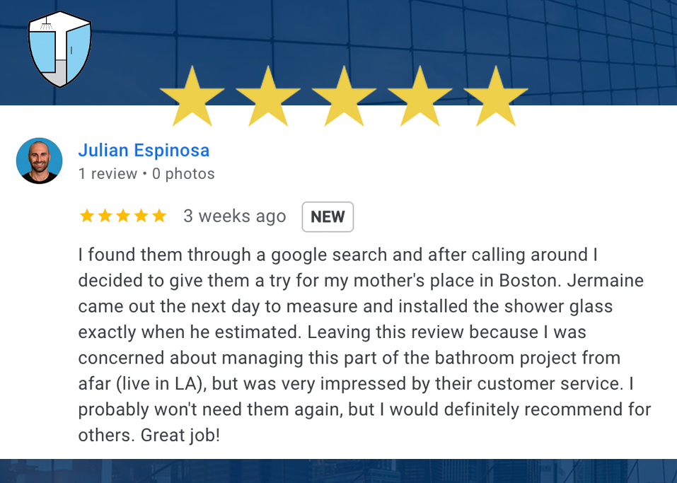 Whether you are looking for The Shower Glass Guy or simply searching for a “custom shower glass installer near me”, Jermaine and his team have installed over 1,000 custom shower glass enclosures across the Greater Boston area, South Shore and Rhode Island.